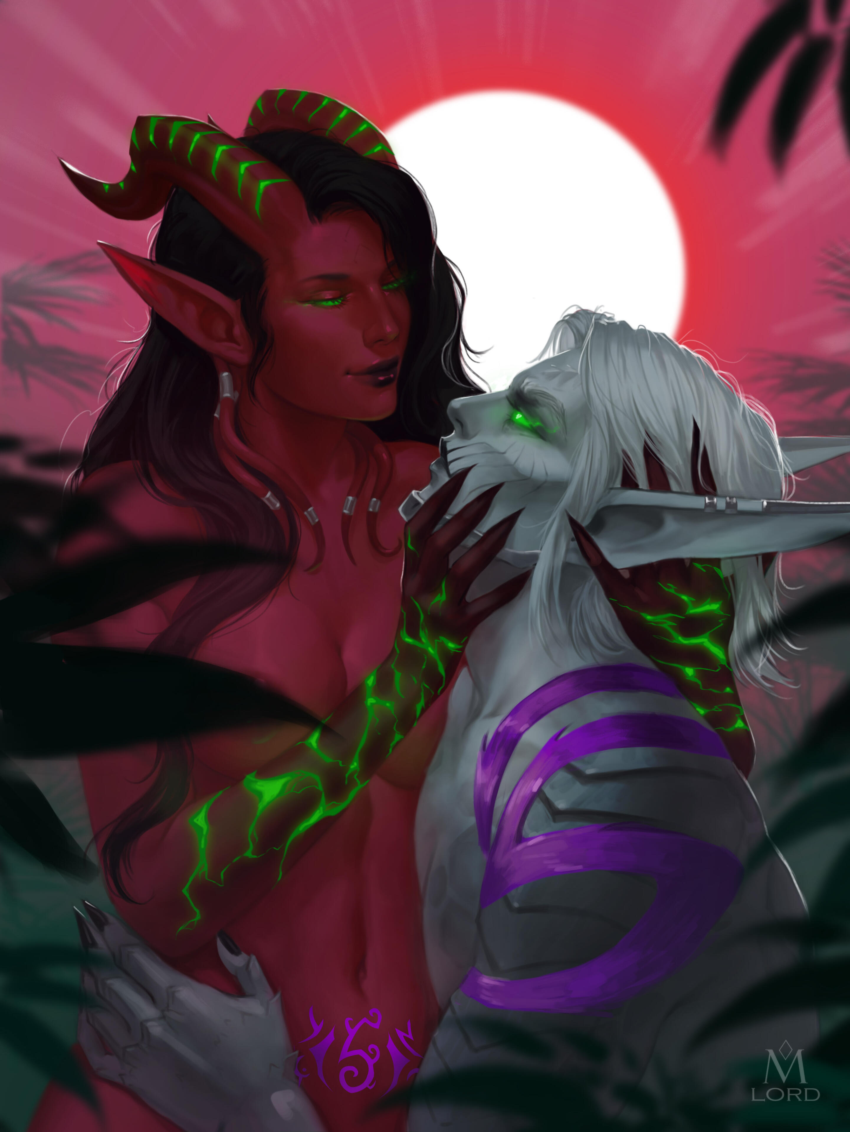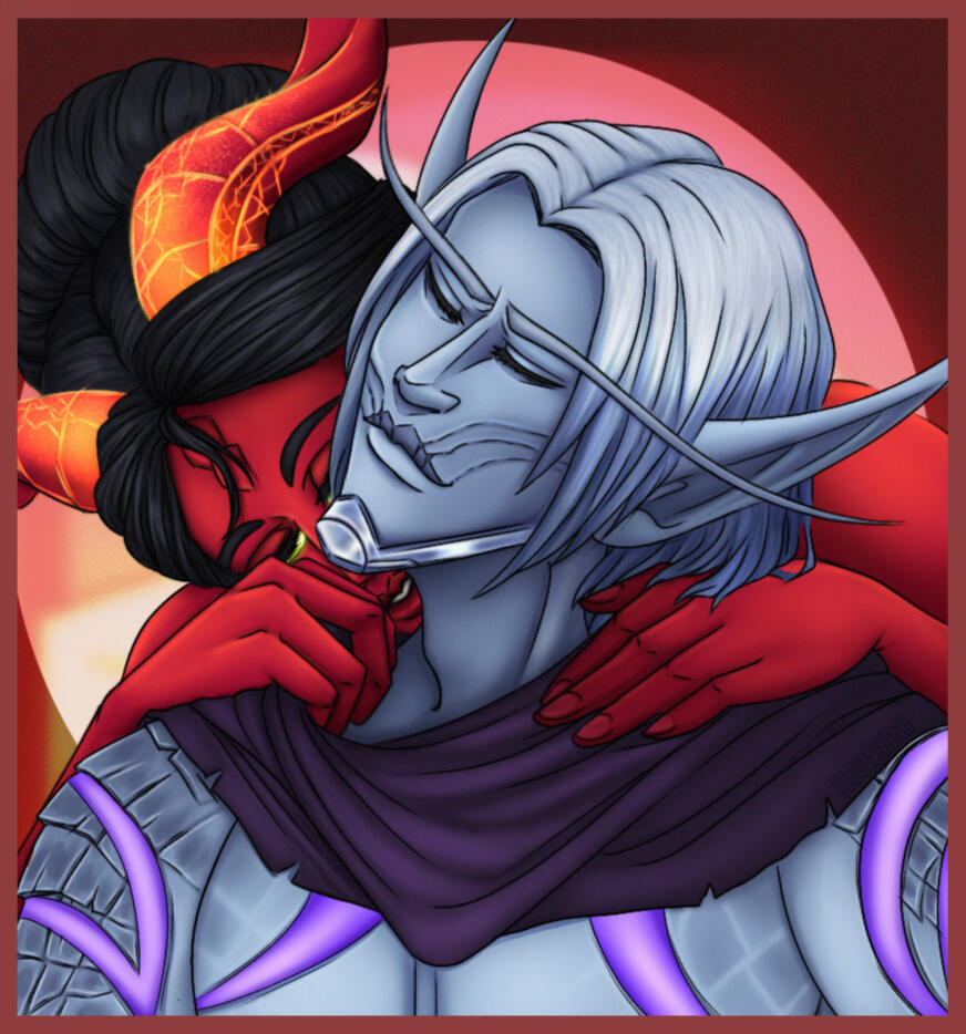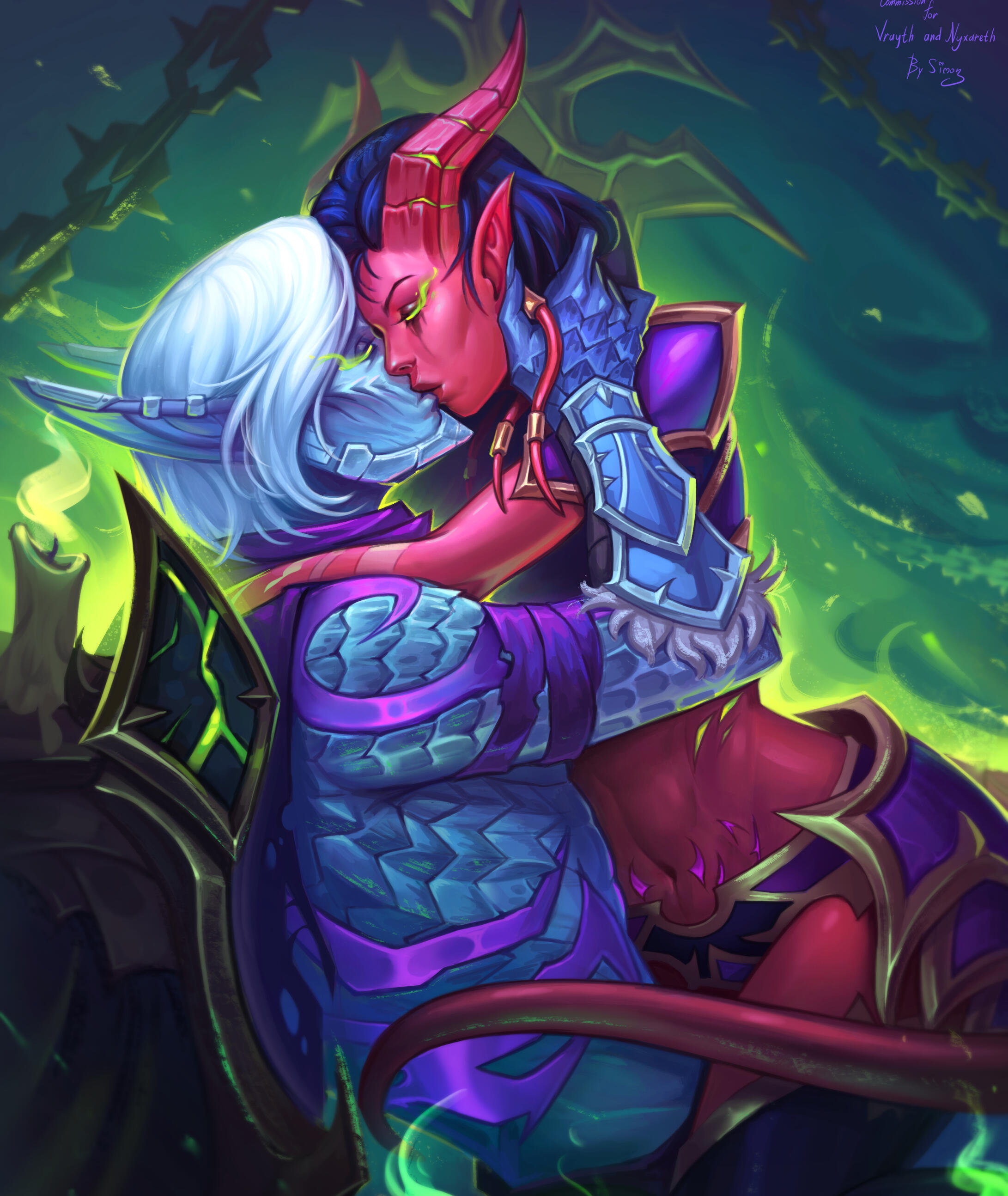 A withered slayer with a ravenous desire to one day witness the ultimate defeat of all demon-kin. Whilst once a Nightborne of little renown, the vain hubris of his Duskwatch duty garnered him notoriety among the poorest, and apathy amid the affluent. Long lived, Vrayth had managed to establish a robust lifestyle with his betrothed, a childless family of two that held strong for millennia.As carnage devastated the streets of Suramar, his beloved, exposed as an agent of the dusk lily, was imprisoned to feed the legion's soul engines. A death sentence which Vrayth foolishly attempted to thwart. But it was first when the scarred and bleeding Arcblade knelt to embrace the lifeless carcass of his late wife, that a unit of nearby battle-worn Illidari took notice of the mourning Nightborne.The demonic presence now revels in its perversion; with silver skin adorn by dusky scales, and the violet gleam of the chaotic markings. Vrayth had held no hesitation, and was willing to sacrifice all that remained.